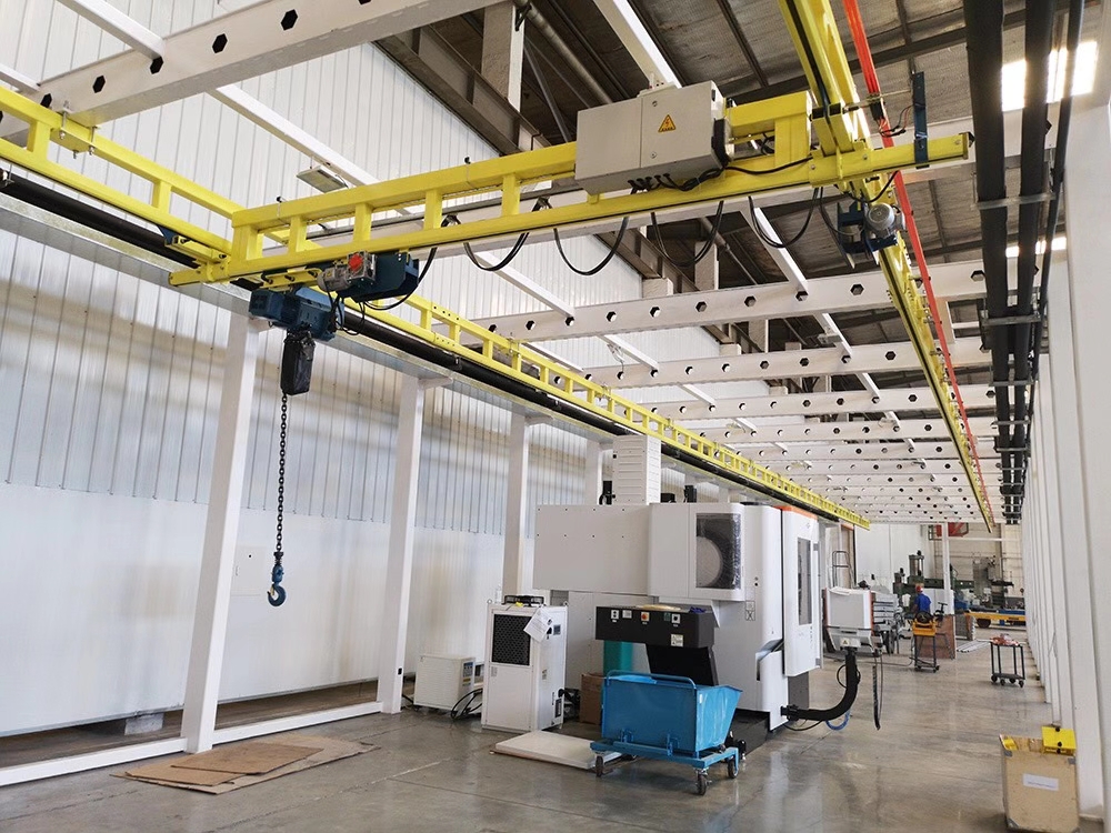 2.柔性組合式懸掛起重機自重特別輕,滑輪與軌道之間的摩擦力很小,操作輕便,可以很輕松的用手移動,能夠很迅速的輸送搬運那些不太方便的輕小型的物件。系統(tǒng)配備的環(huán)鏈電動葫蘆及其行走驅(qū)動裝置,電器控制裝置和配套系統(tǒng),確保系統(tǒng)工作壽命長,無故障,免維護。